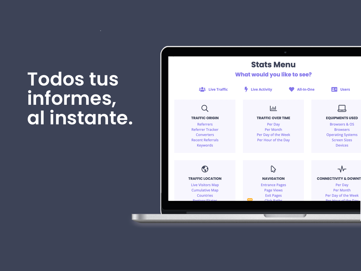 Web-Stat es una aplicación de analítica web en tiempo real que te ayuda a entender cómo interactúan realmente los visitantes con tu sitio. Ofrece la misma profundidad de datos que las herramientas avanzadas de analítica, pero los presenta de forma clara, directa y fácil de usar.